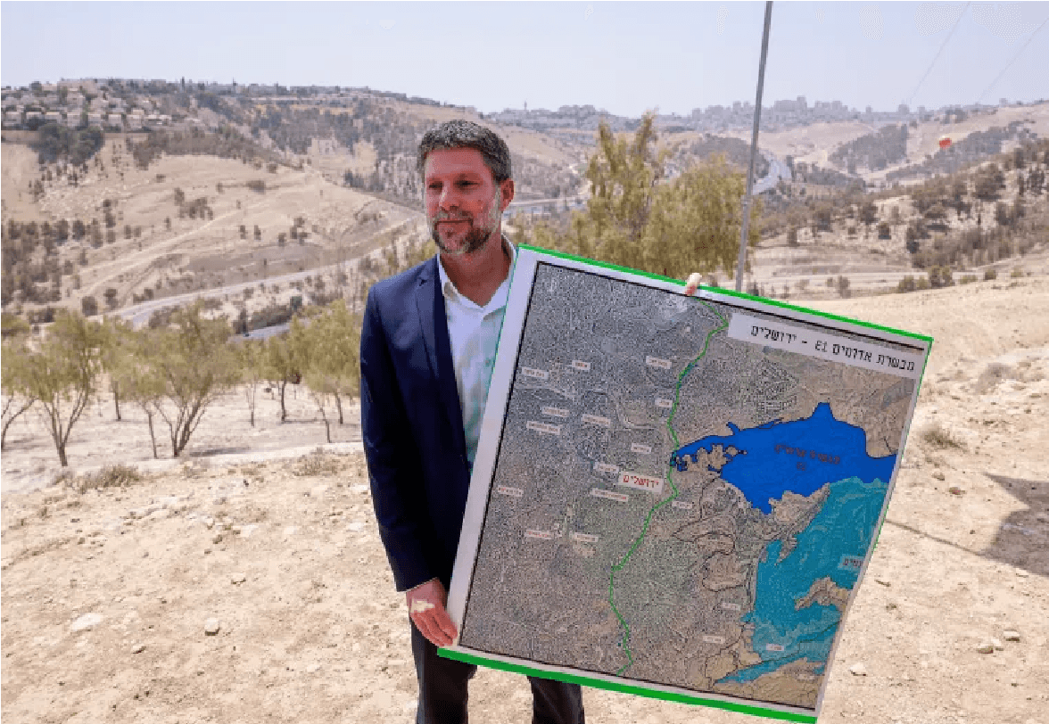 در سال ۲۰۲۵، بتسلئیل اسموتریتش وزیر دارایی اسرائیل در یک صحنه جنجالی نقشهای را نمایش داد که توسعه شهرکها در منطقه حساس E1 در شرق قدس را نشان میداد. این اقدام بخشی از طرح خاموش رژیم اسرائیل برای الحاق کرانه باختری محسوب میشود.